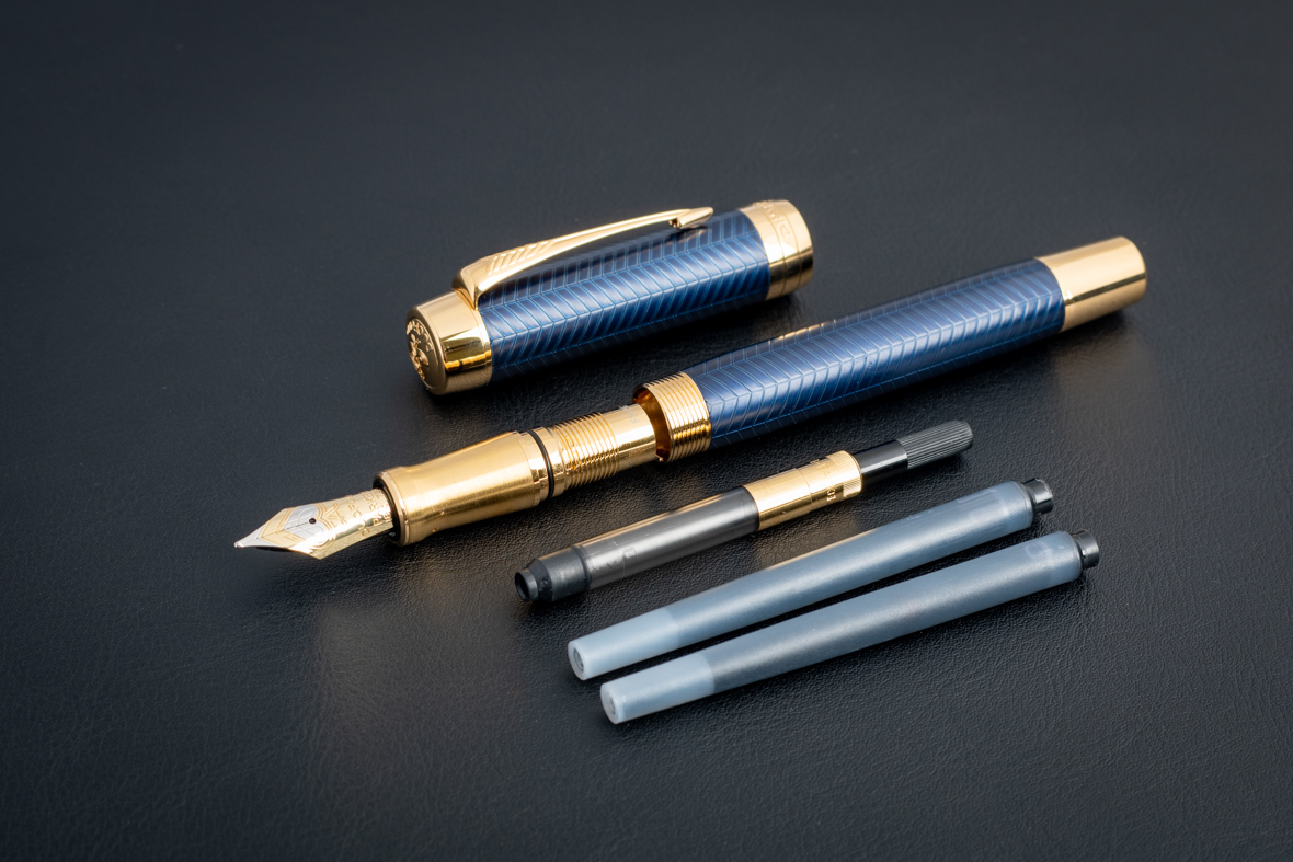 Перьевая ручка Parker Duofold Prestige Centennial Blue Chevron GT (M) от официального дилера Parker в Якутске. Вы можете дополнительно заказать гравировку, которая подчеркнет Вашу оригинальность и придаст памятность статусному подарку. Все ручки Паркер поставляются в фирменном футляре.